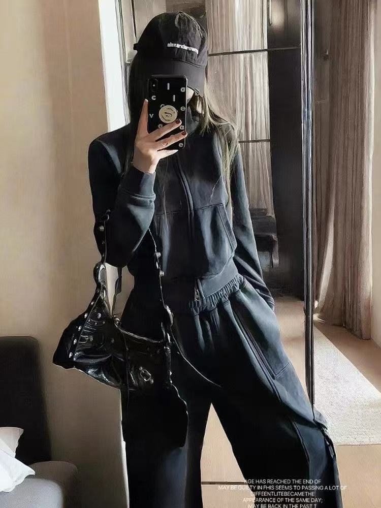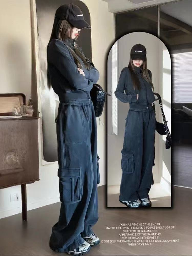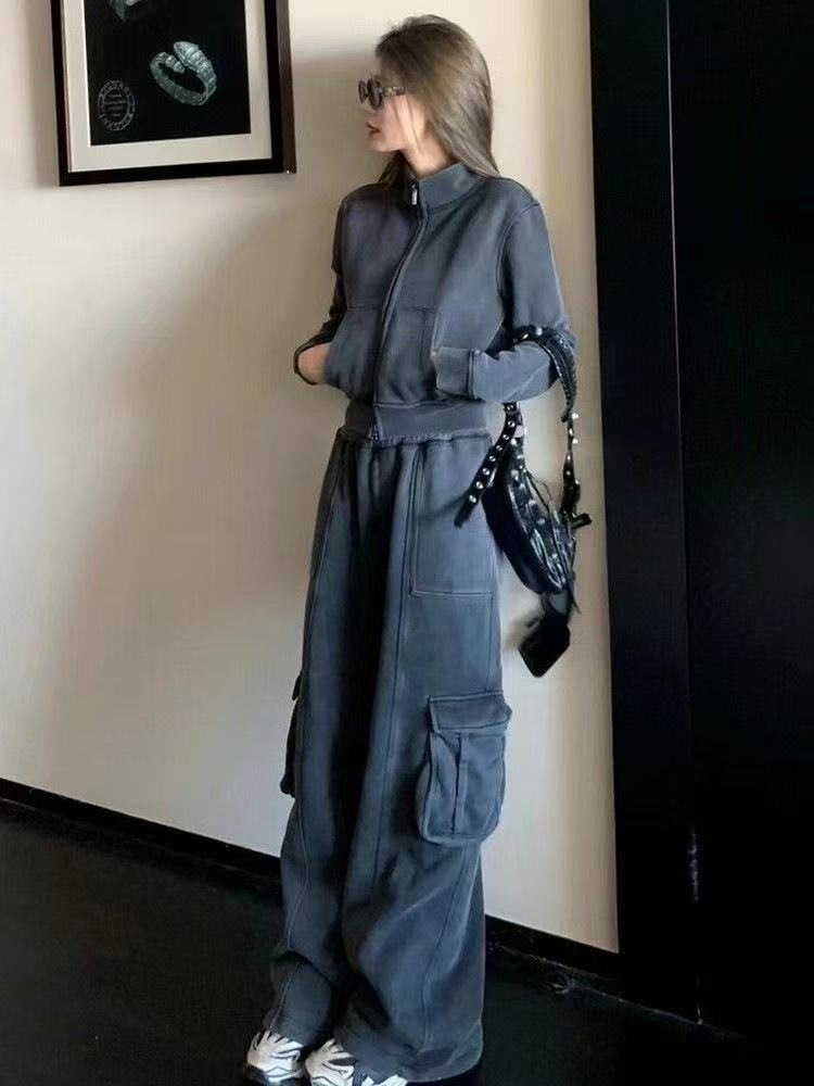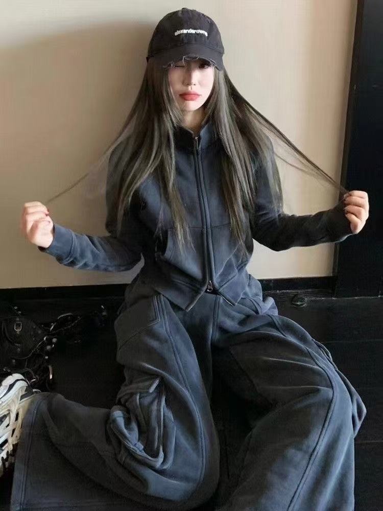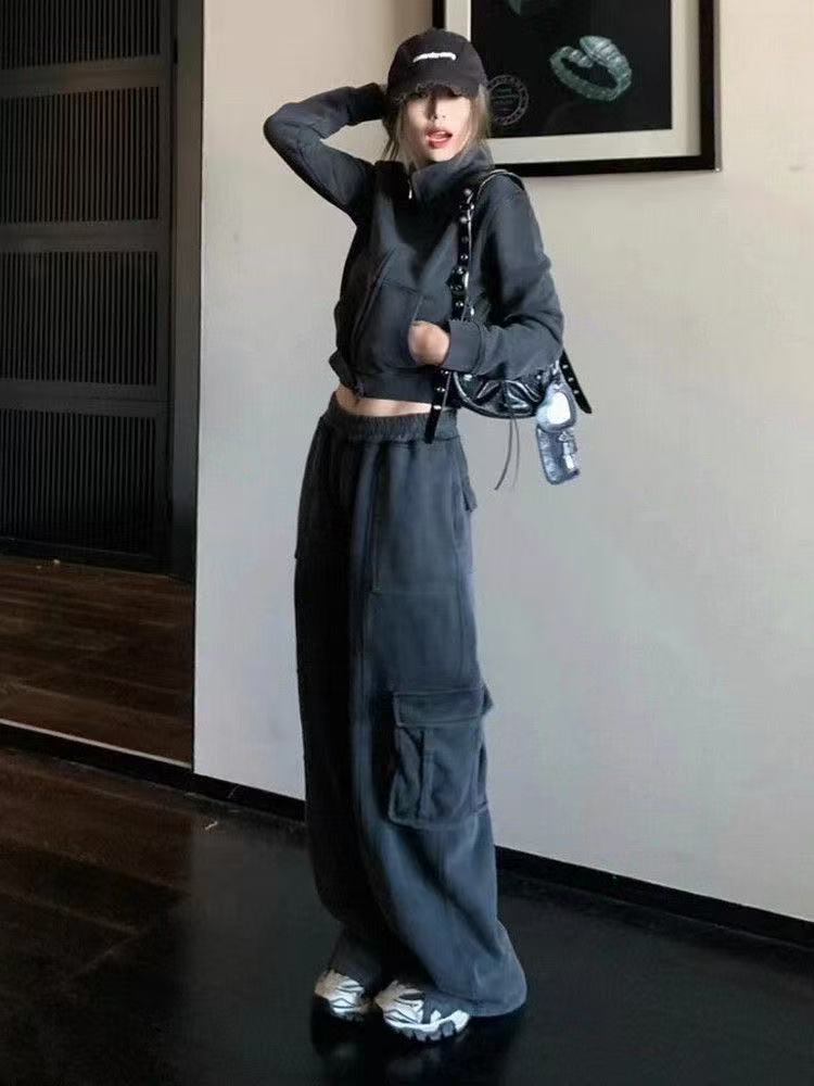 Product information: Pattern: solid color Color: dark gray, brown Pants length: trousers Size: S,M,L,XL,XXL Style type: Japanese and Korean casual Popular elements: splicing Fabric name: Polyester Sleeve type: conventional sleeve...