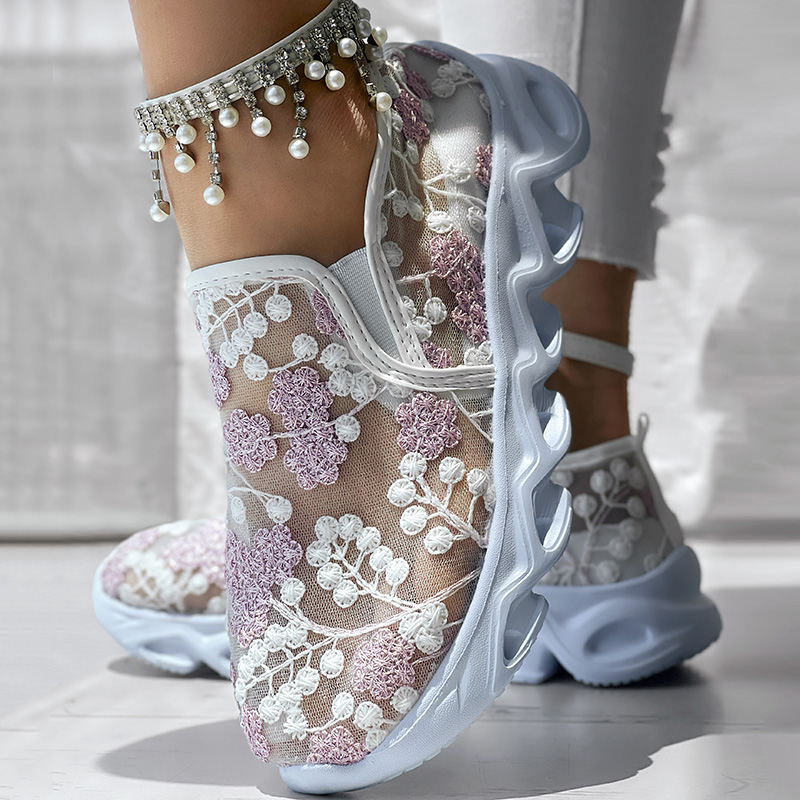 Contrast Glitter Transparent Mesh Patch Breathable Sneakers - Without Ankle Strap