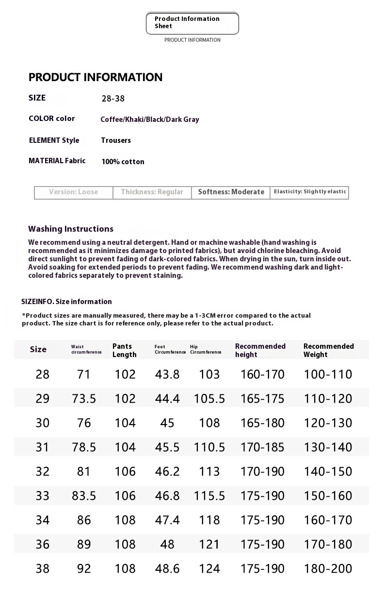 Size: 28, 29, 30, 31, 32, 33, 34, 36, 38