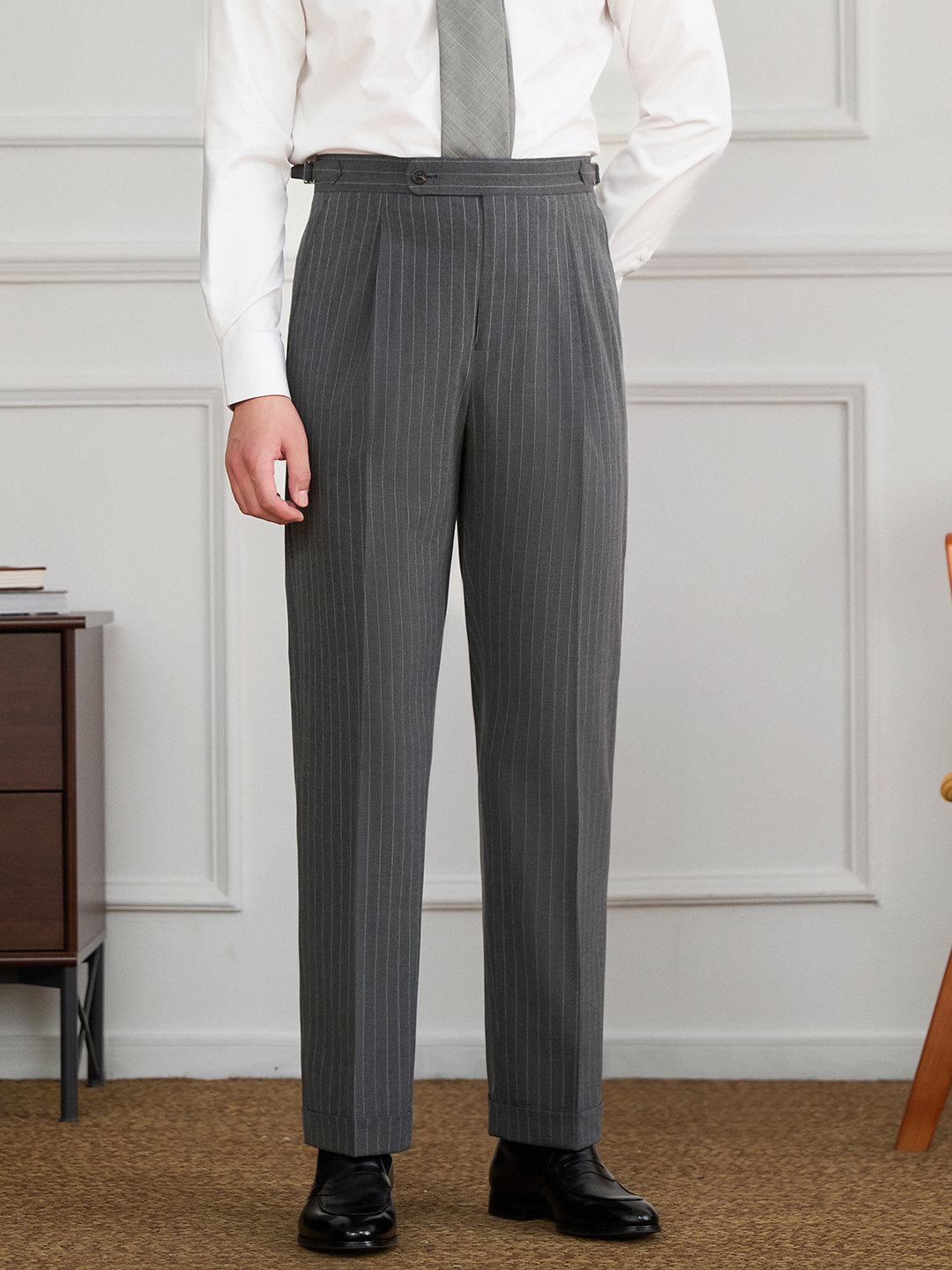 Italian Retro Men's Neapolitan Stripes High-waisted Trousers