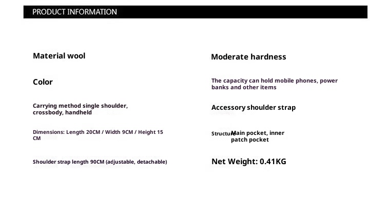 Product information: Lining texture: Polyester Color: Brown Outer bag type: Three-dimensional pocket Hardness: medium Material: lamb wool Suitcase shape: Horizontal Square Packing list: Handbag *1 Product Image: