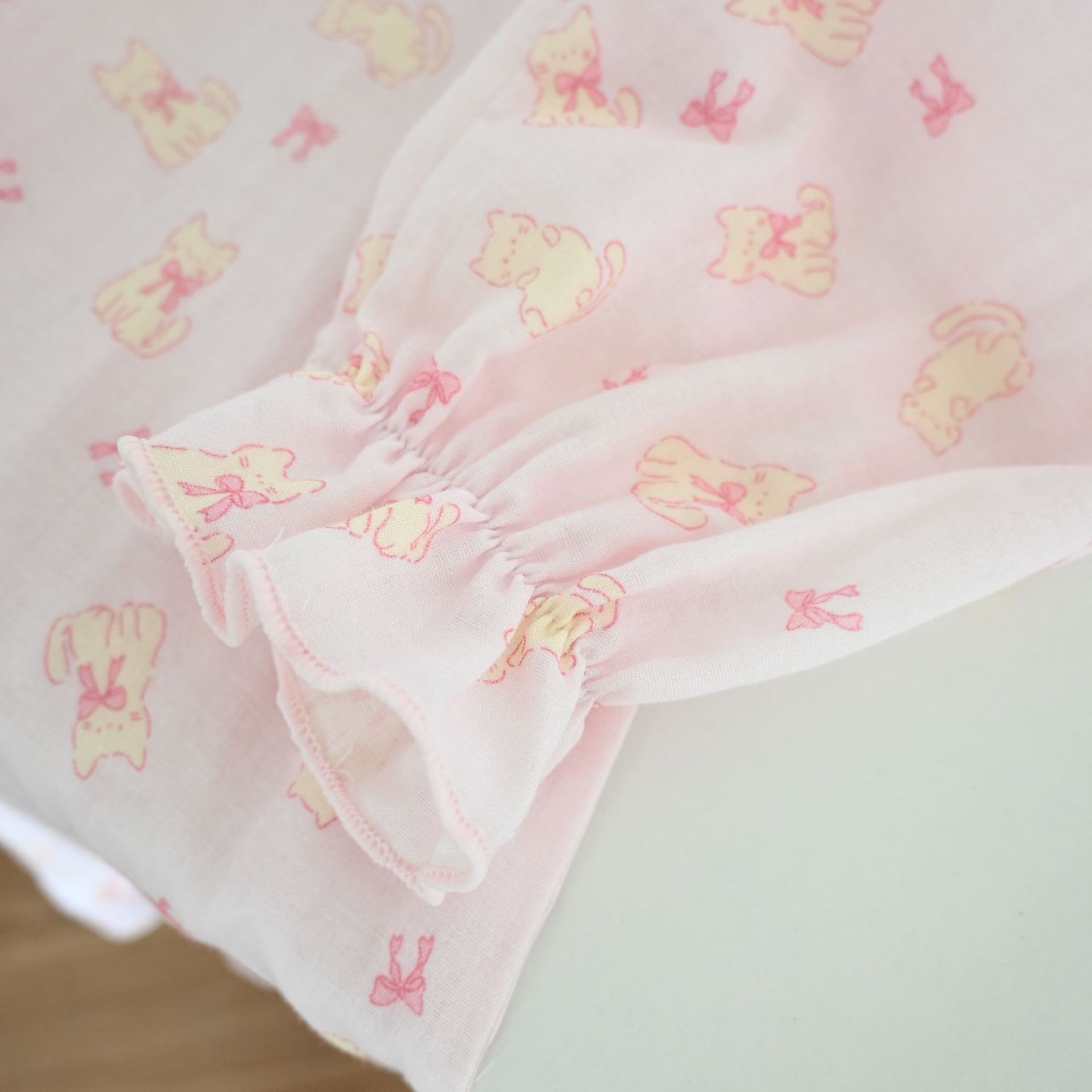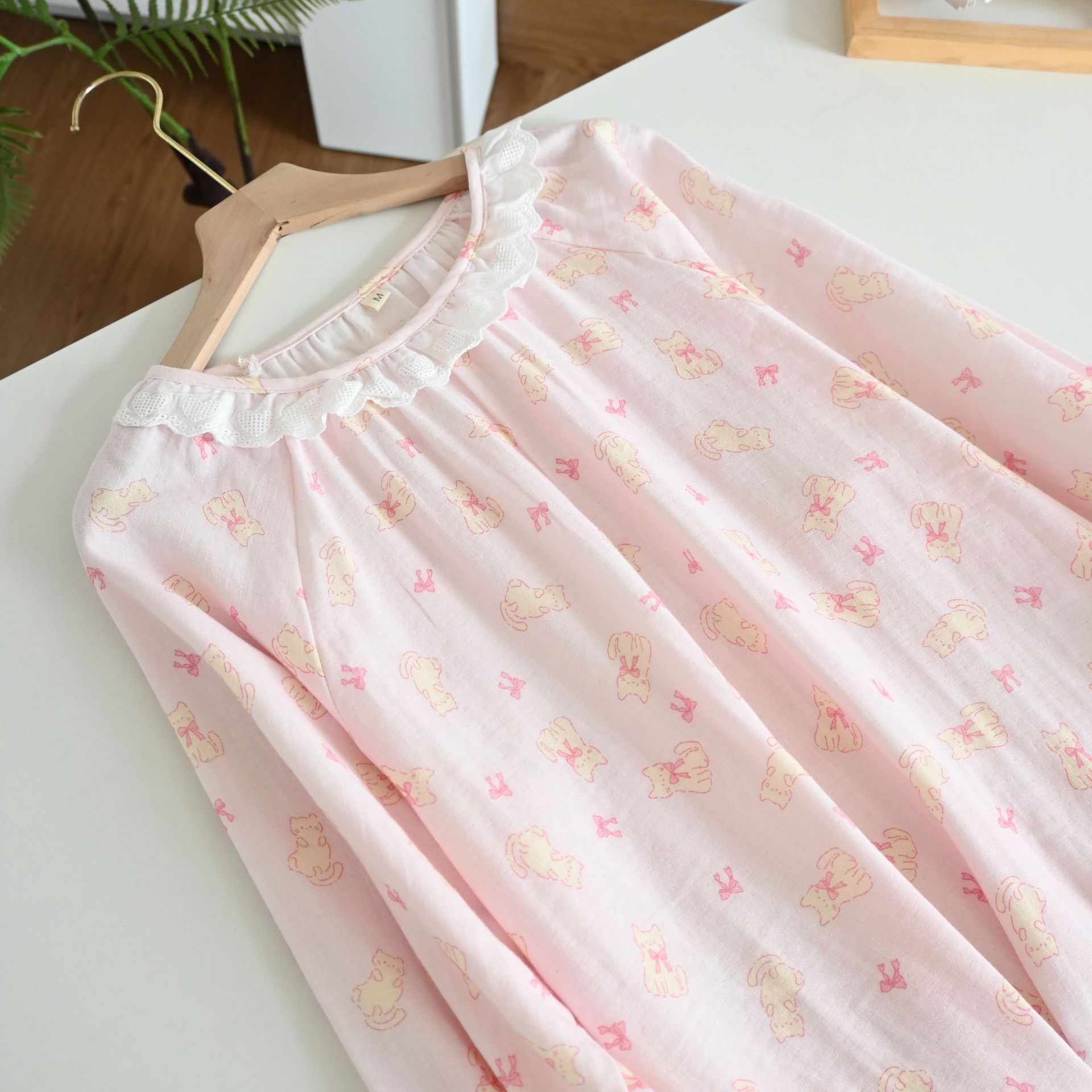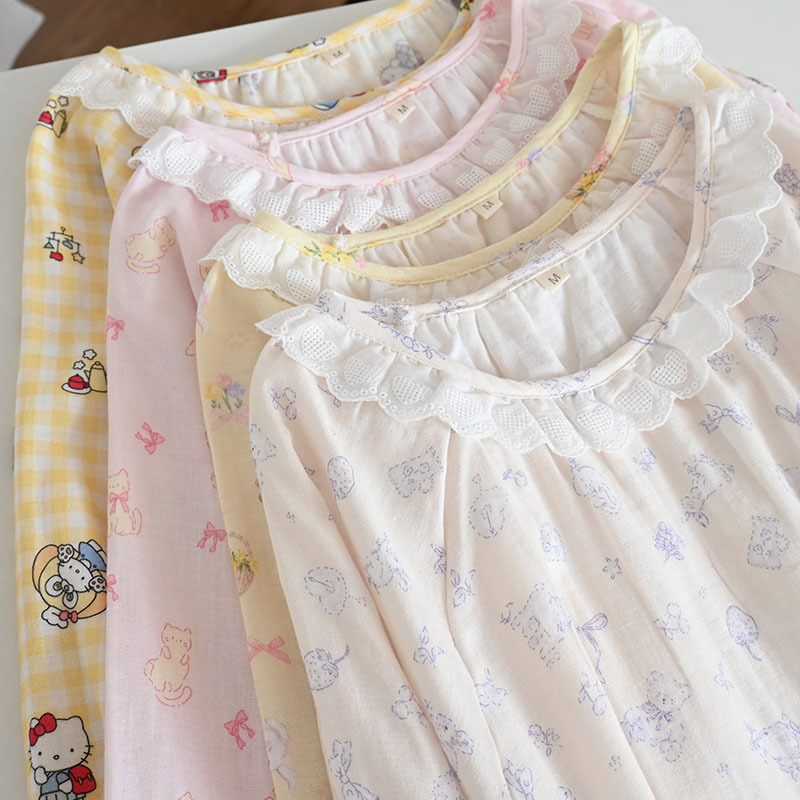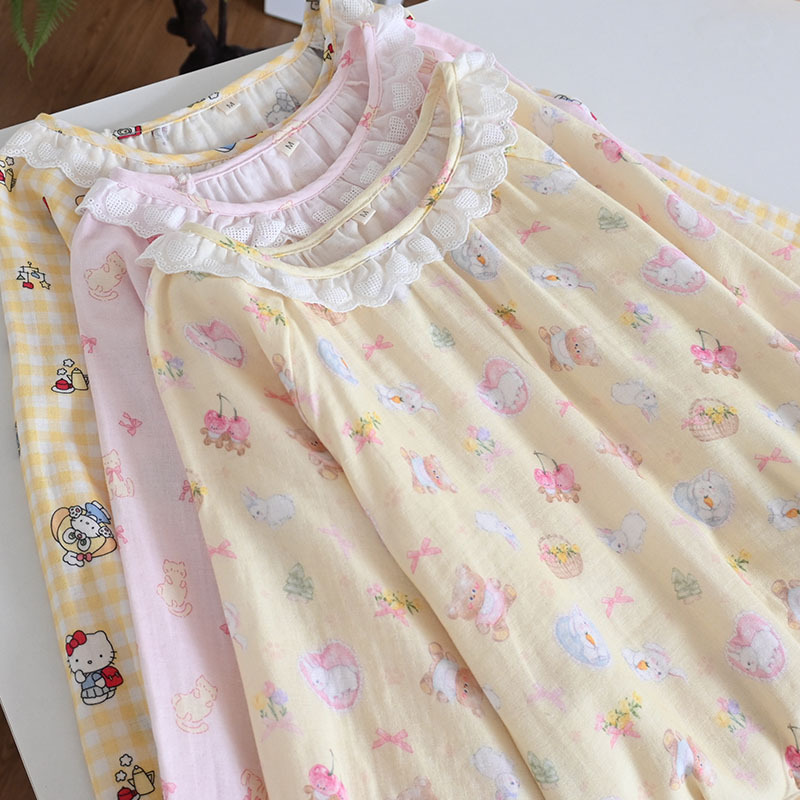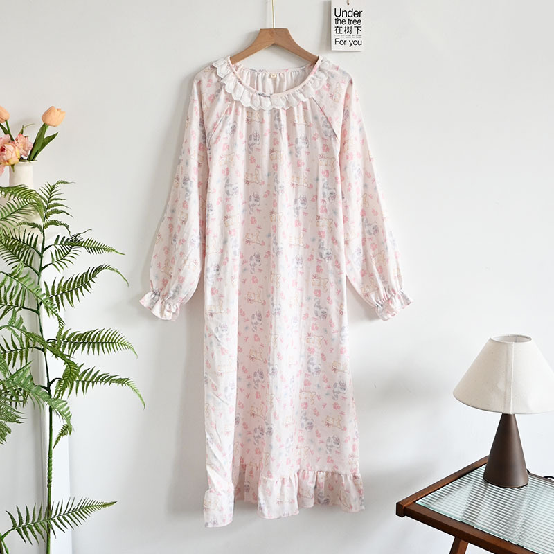 Color: Gentleman cat long sleeve nightdress, garden rabbit long sleeve nightdress, pink cat long sleeve nightdress, beige bear bubble long sleeve nightdress, yellow bear long sleeve nightdress