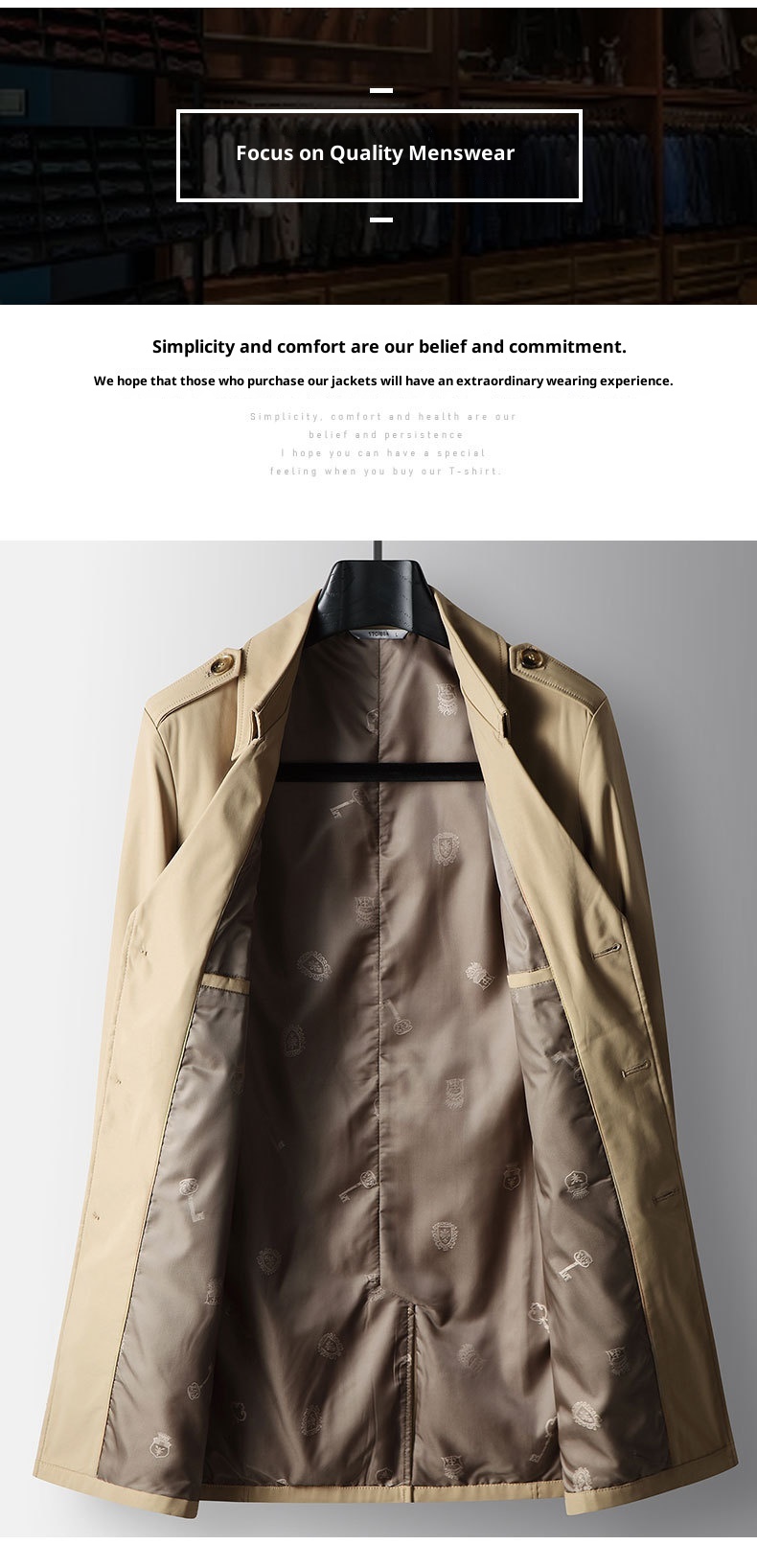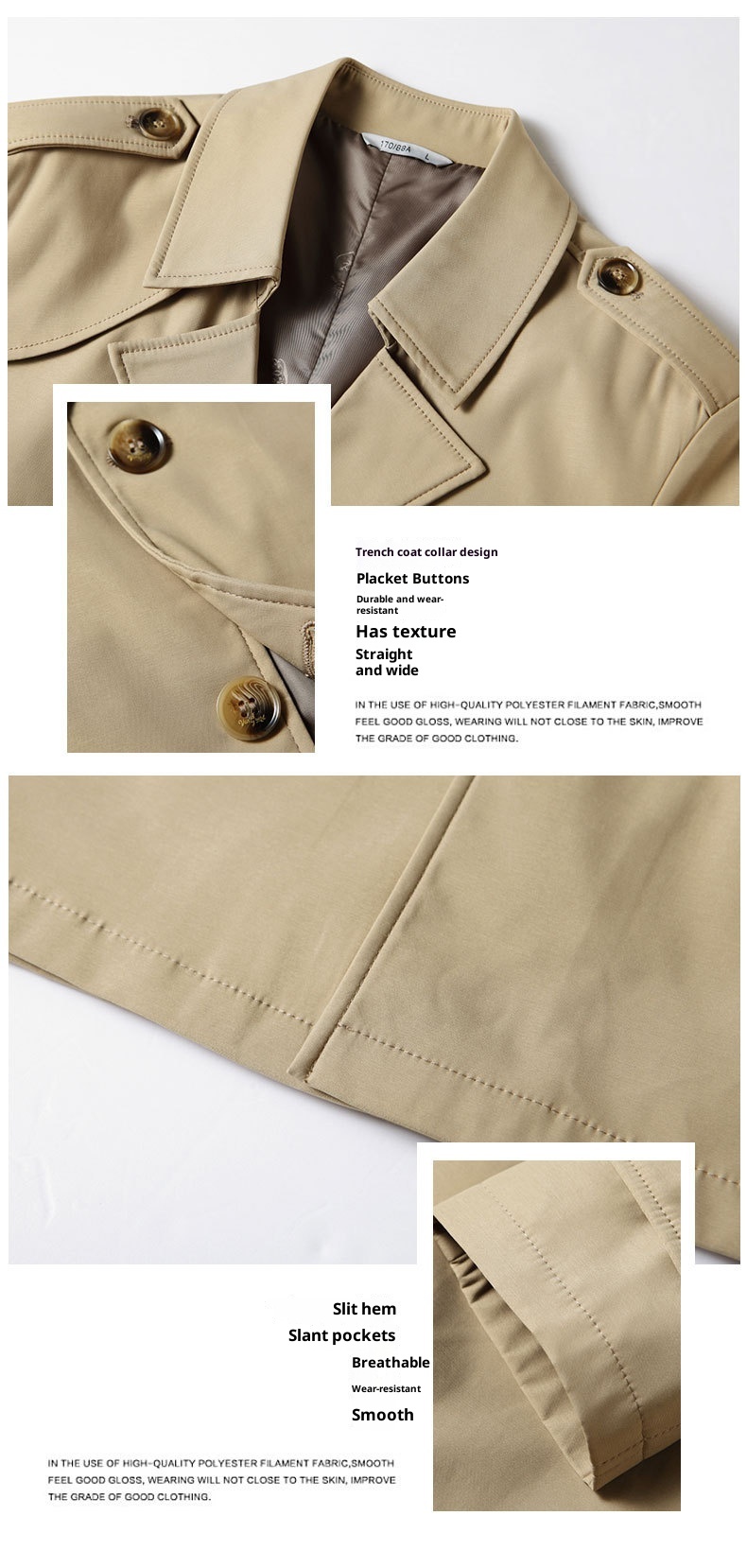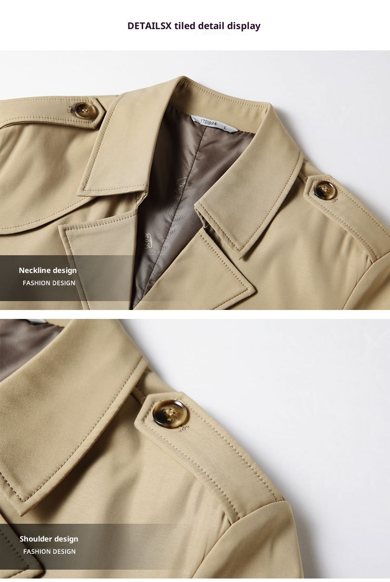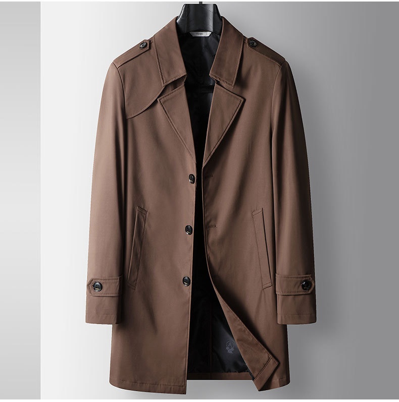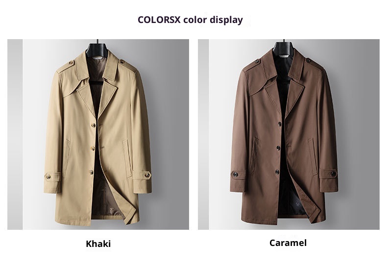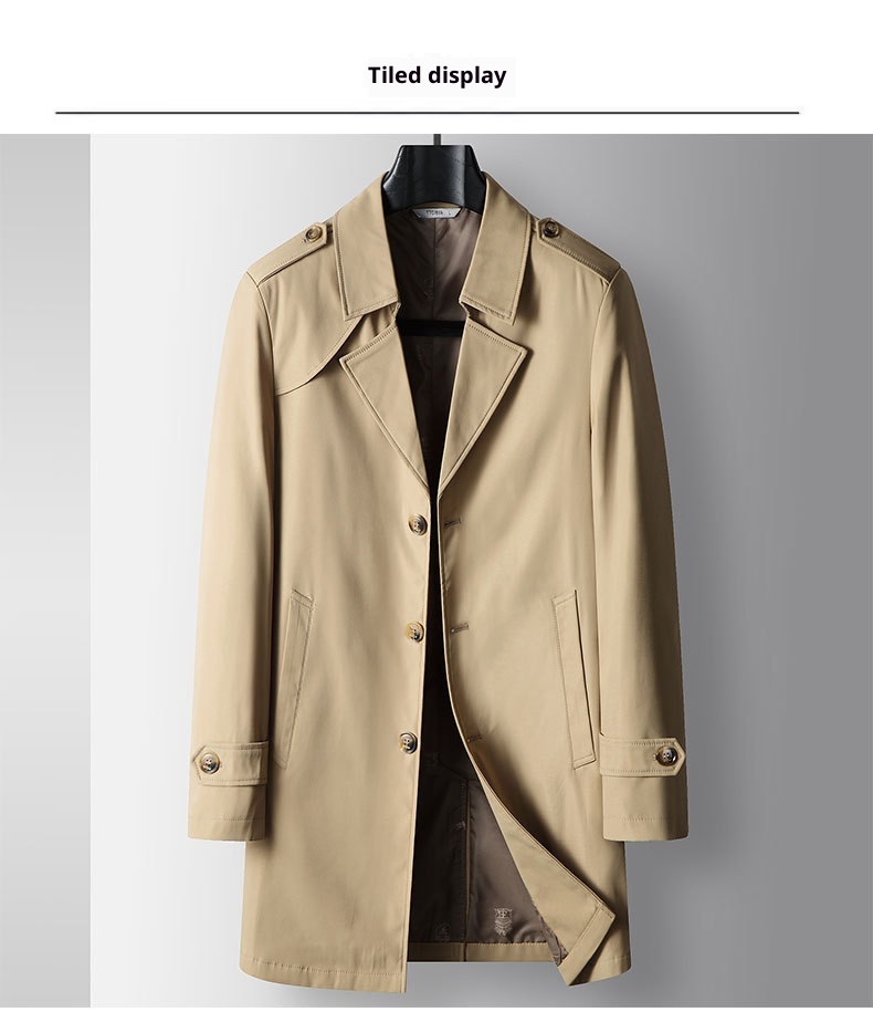 Mid-length Lapel Single Breasted Medium Youth Young Luxury Business Casual Trench Coat