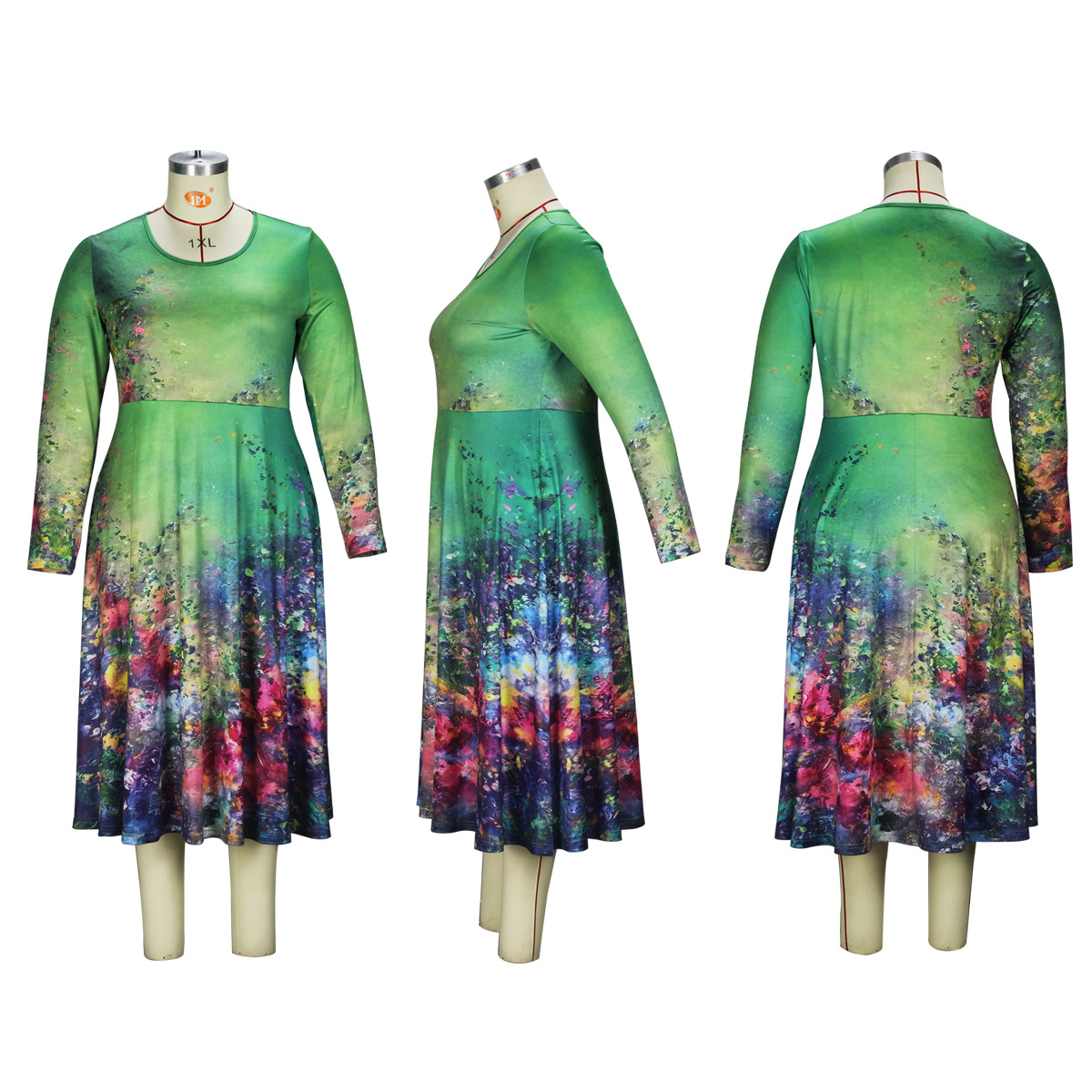 Product information: Pattern: random printing Skirt type: A- line skirt Color: color, black, dark pink, red, emerald green Size: 0XL,1XL,2XL,3XL,4XL Size: L,XL,XXL,XXXL, XL, free size, giant size Sleeve length: long...