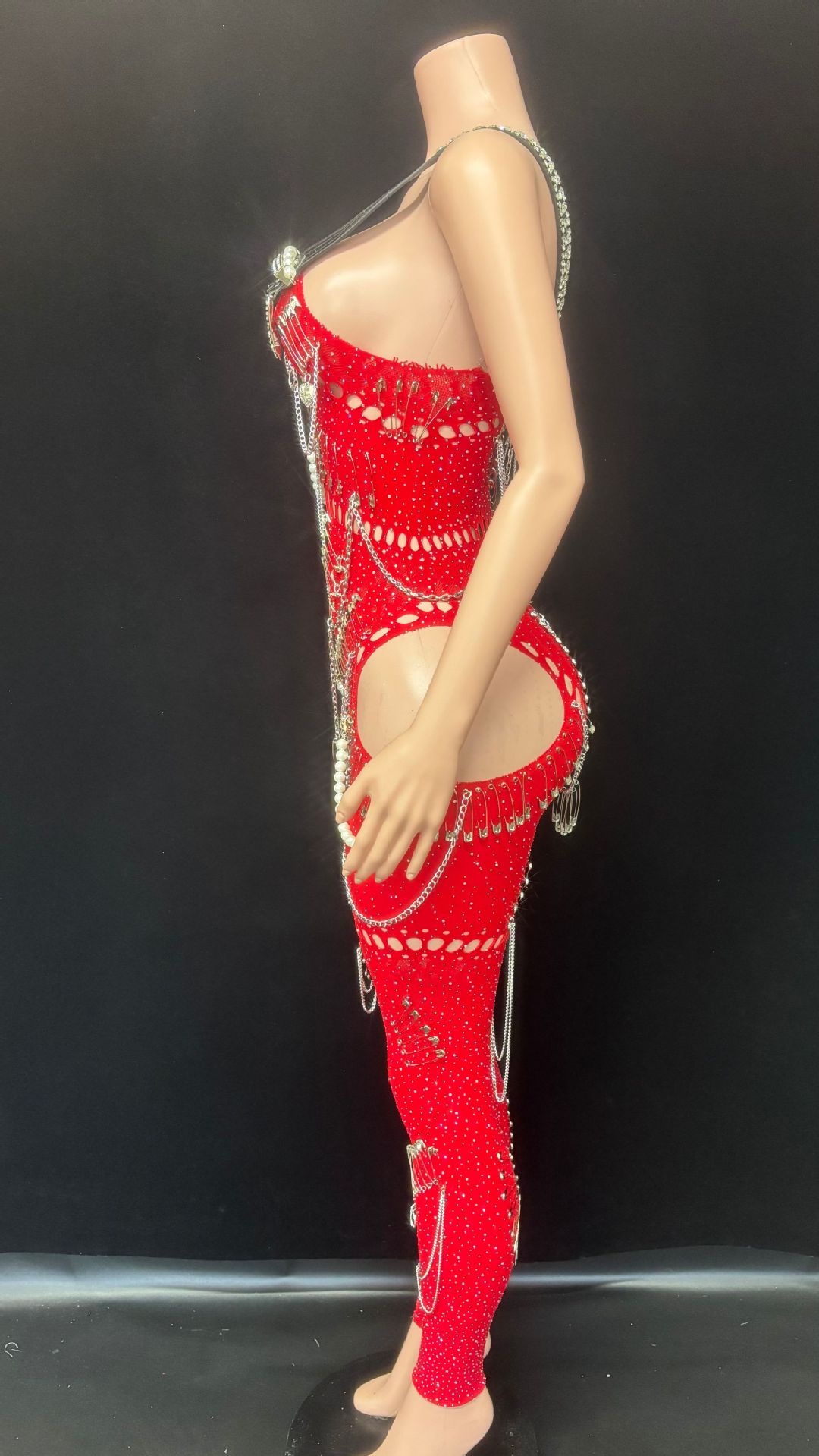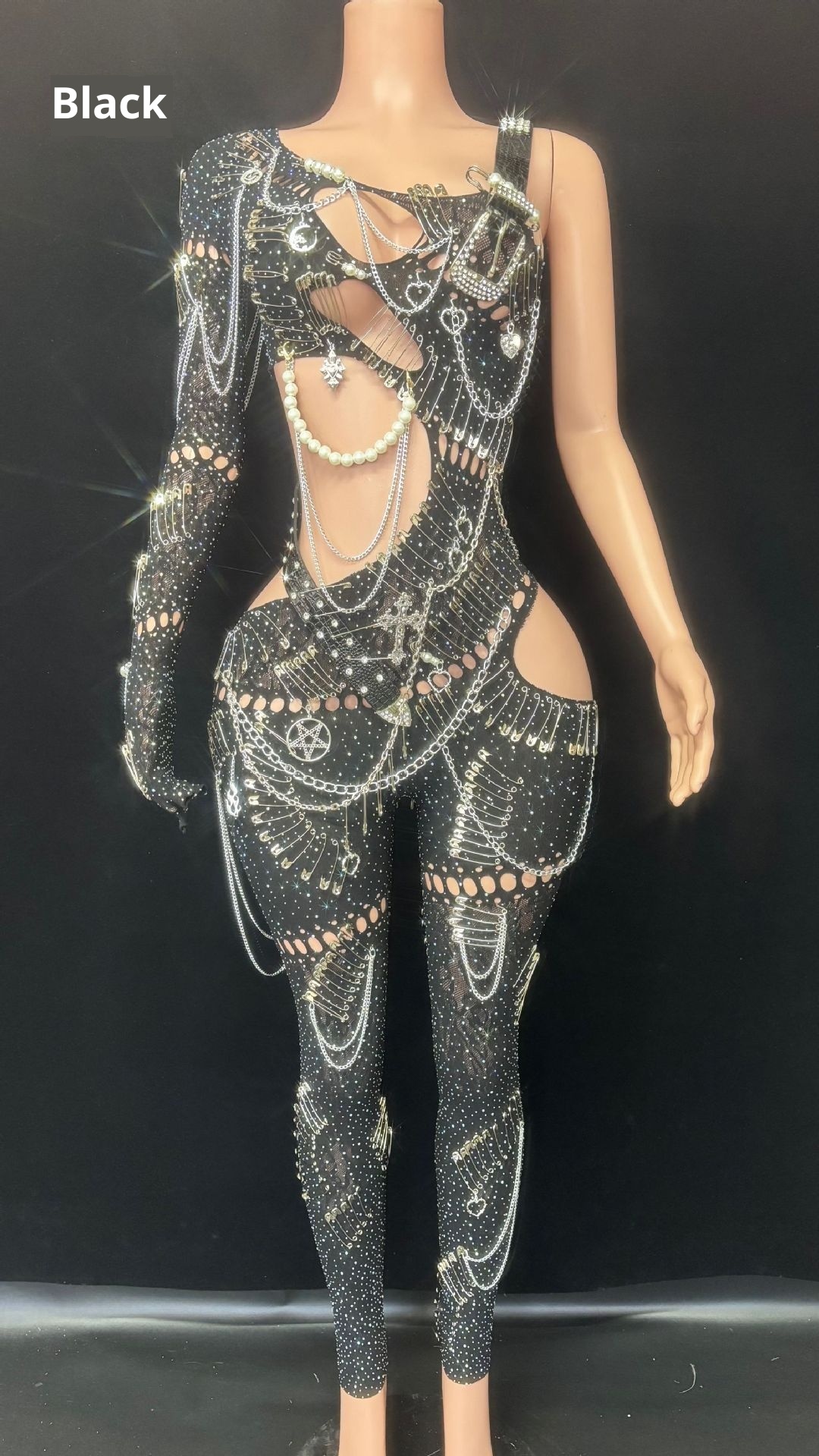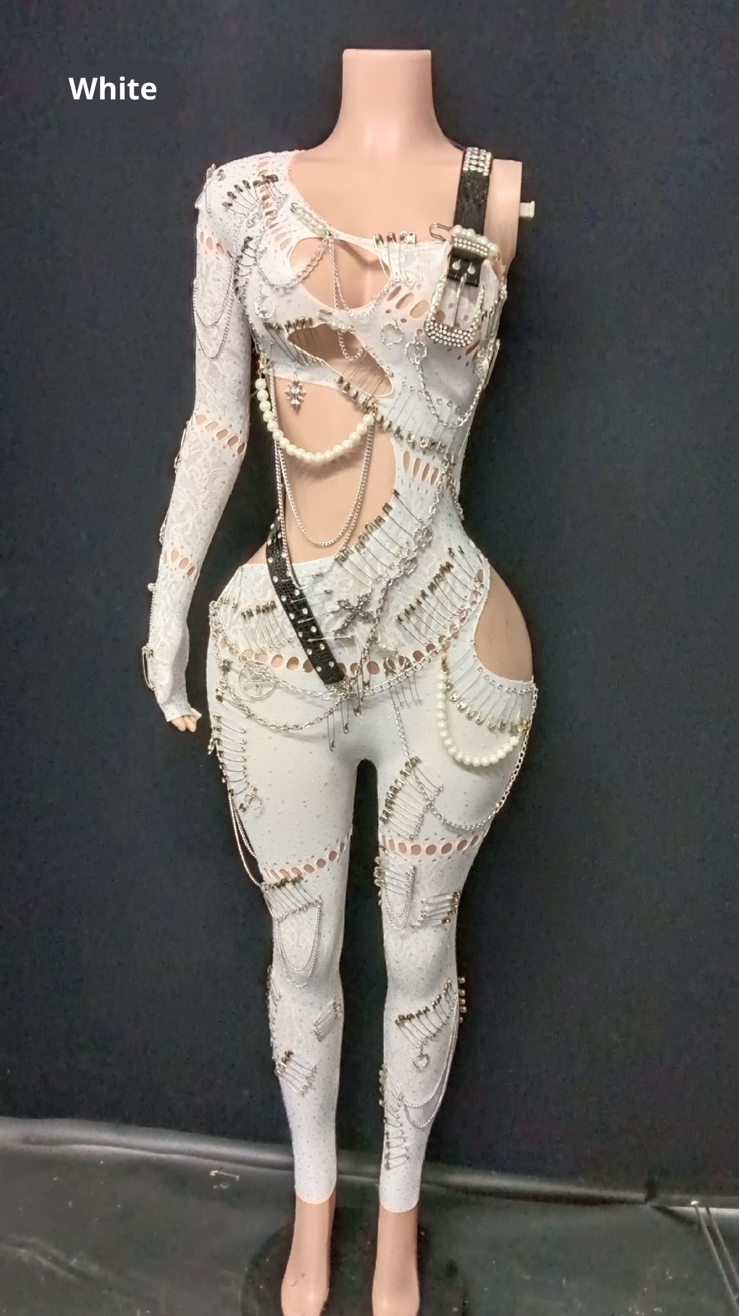 Women's Simple Sexy Cutout Pearl Chain Jumpsuit