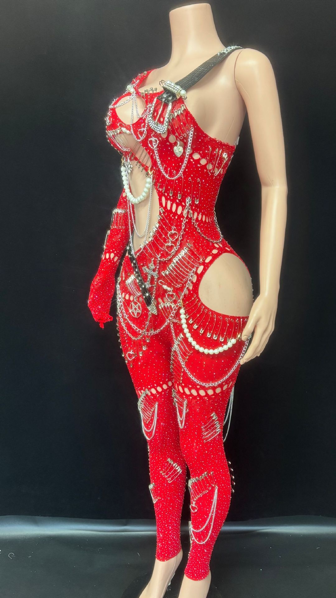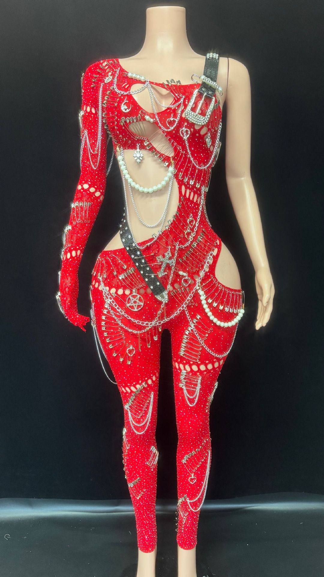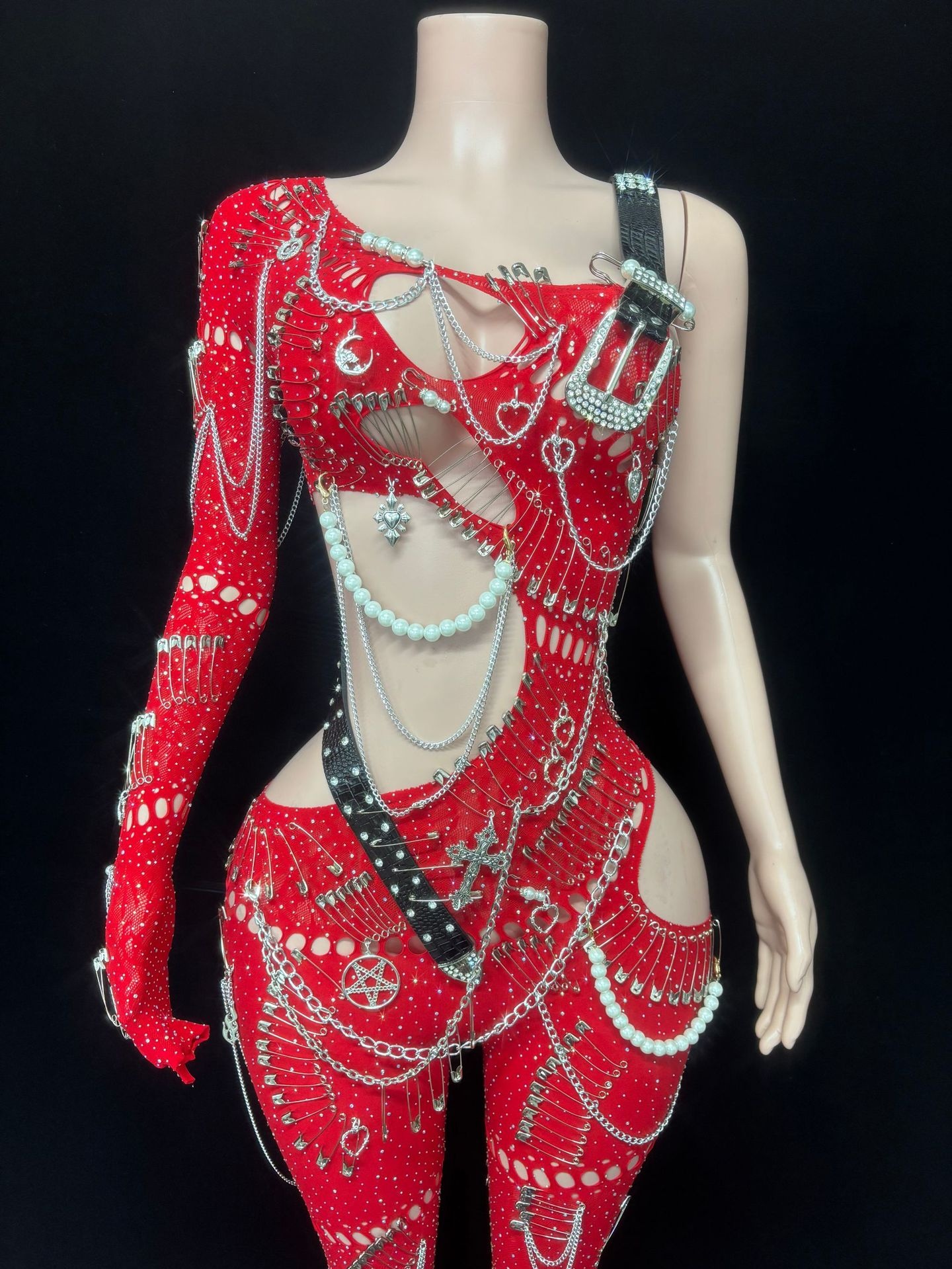 Women's Simple Sexy Cutout Pearl Chain Jumpsuit